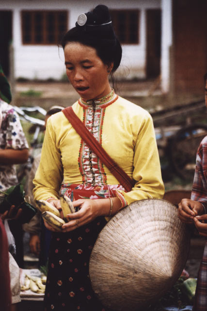 Woman from Yao hill tribe at Muang Sing market. Laos.
