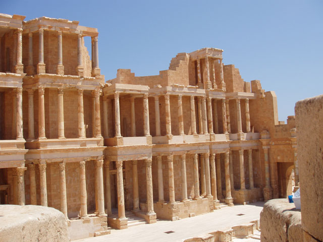 Archaeological Site of Sabratha, Phoenician trading-post was part of the Numidian Kingdom of Massinissa before being Romanized and rebuilt in the 2nd and 3rd centuries A.D. Libya.
