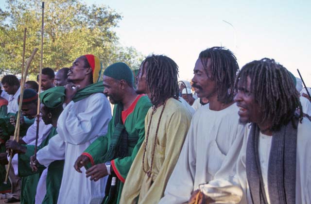 Whirling dervishes are coming. Their color is green. Hamed-an Nil Mosque, Khartoum (Omdurman). Sudan.