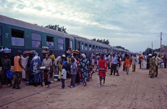 People mummery at one of the few train stops on route Keys-Bamako. Mali.