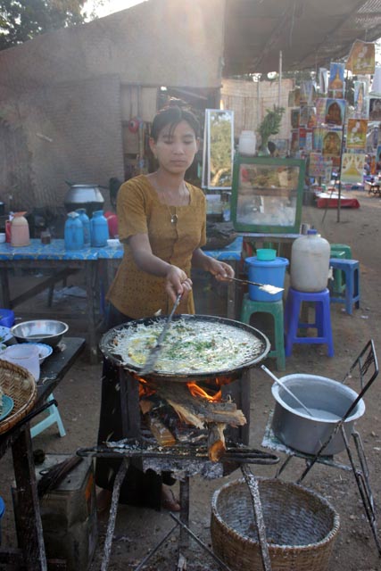 ,All women are whitenig their faces with such kind of local parfume made from ground bark of thanakha tree. Old Bagan market. Myanmar (Burma).