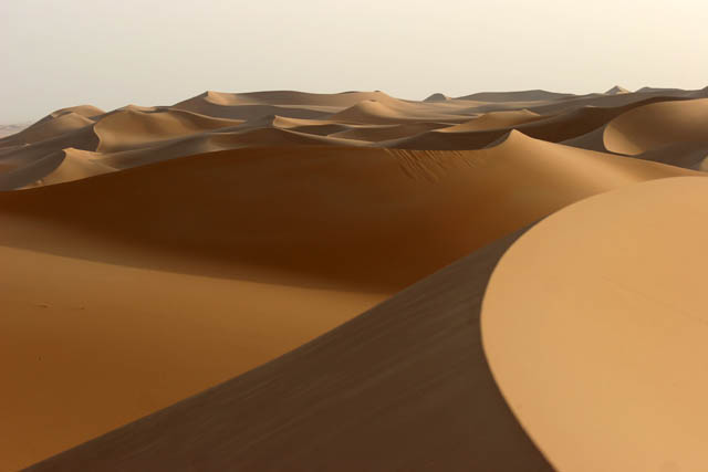 Arrakau - nomad family comes through sand dunes. Sahara desert. Niger.