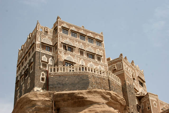 Famous 'rock palace' Dar al-Hajar at Wadi Dhahr. Yemen.